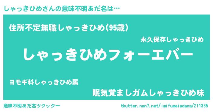 | ファンタジー風あだ名 | 『エターナルシャッキヒメー』 |