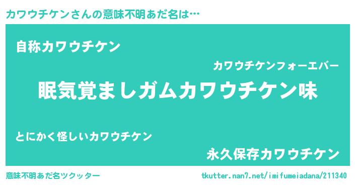 | 男性向けラノベタイトル風あだ名 | 『ノーゲーム・ノーカワウチケン』 |