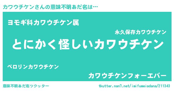 | 胡散臭い通販商品みたいなあだ名 | 『信頼と実績のサプリメント…その名も「カワウチケン」』 |