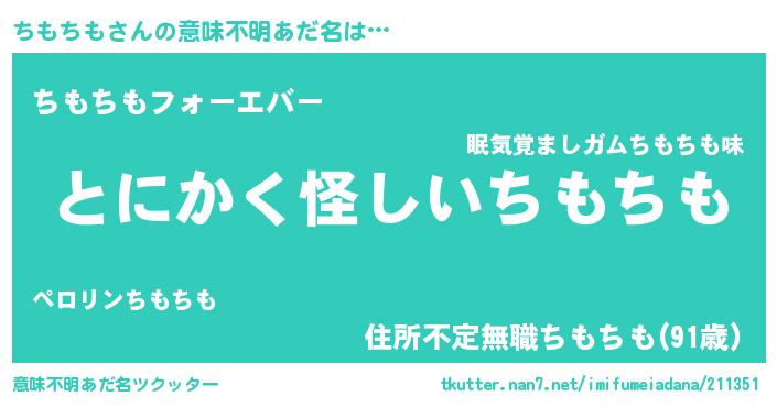 | ヘコむあだ名 | 『ちもっ子』『豆乳』『ちもっふぃ~』 |