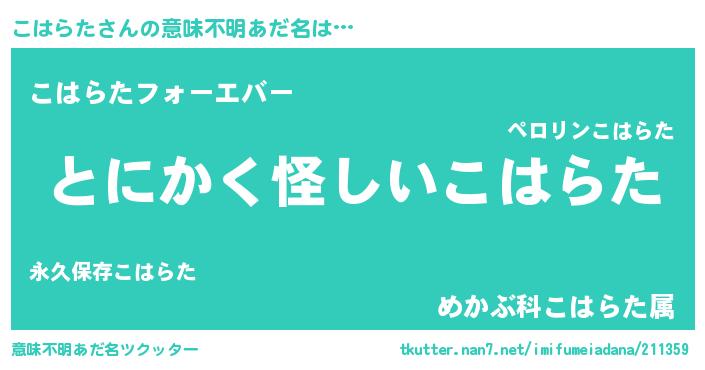 | 胡散臭い通販商品みたいなあだ名 | 『全米が絶賛したサプリメント…その名も「こはらた」』 |