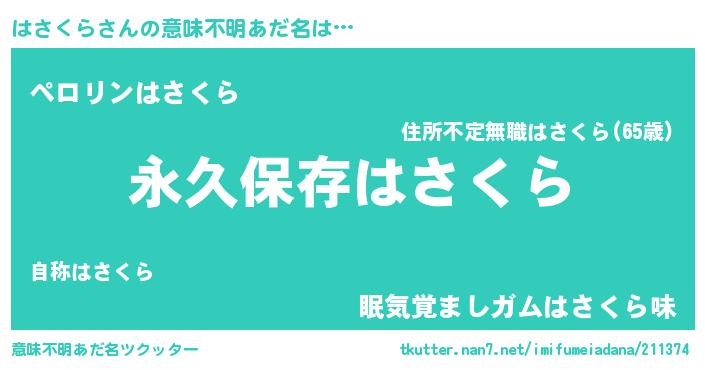| 胡散臭い通販商品みたいなあだ名 | 『来世でも幸せになれる水素水…その名も「はさくら」』 |