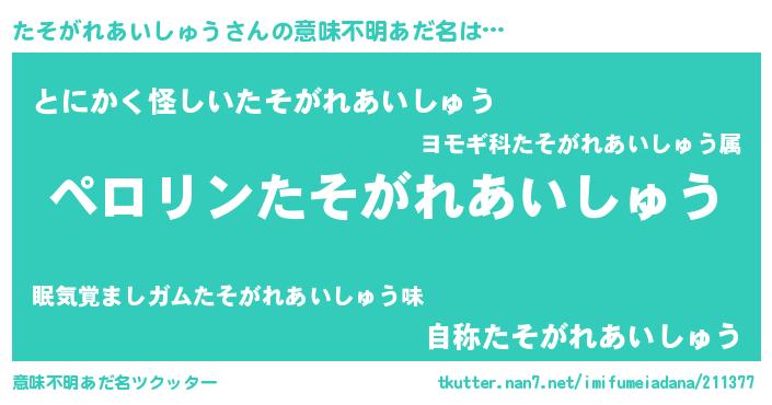 | ピコ太郎風あだ名 | 『タコ五郎』『タソ史郎』『タタ太郎』 |