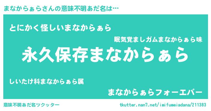 | 胡散臭い通販商品みたいなあだ名 | 『来世でも幸せになれる健康食品…その名も「まなからぁら」』 |