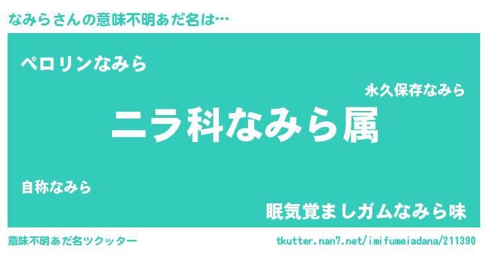 | ヒーロー風カッコイイあだ名 | 『スーパーナミラ』『慈愛の使者なみら』 |