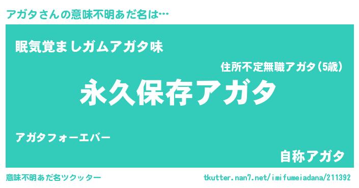 | 男性向けラノベタイトル風あだ名 | 『アガタという概念が存在しない退屈な世界 』 |