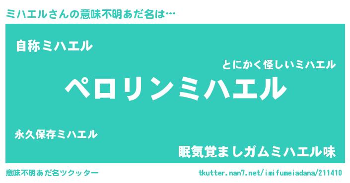 | ポケモン風あだ名 | 『ミハゴンZ』『メロミッハ』 |