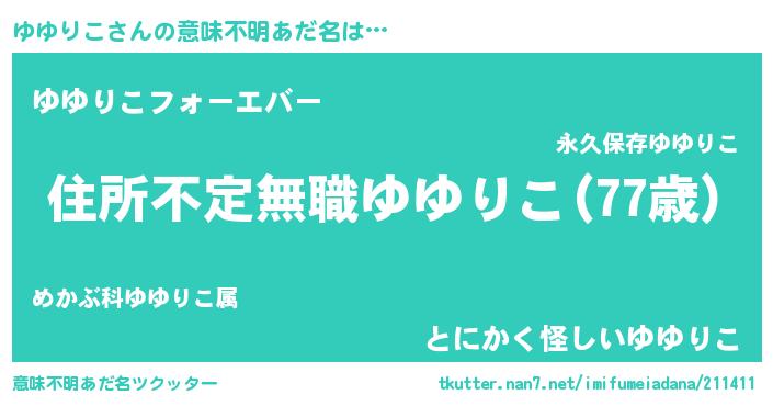 | 男性向けラノベタイトル風あだ名 | 『この素晴らしい世界にゆゆりこを!』 |