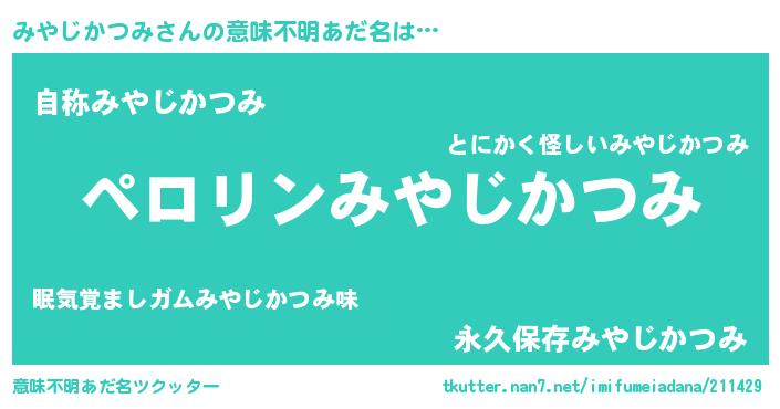 | ヘコむあだ名 | 『みやにー』『みやじかつみ(震え声)』 |