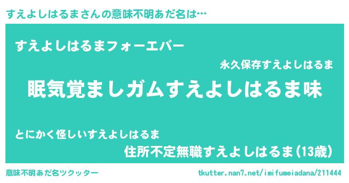 | 男性向けラノベタイトル風あだ名 | 『ノーゲーム・ノースエヨシハルマ』 |