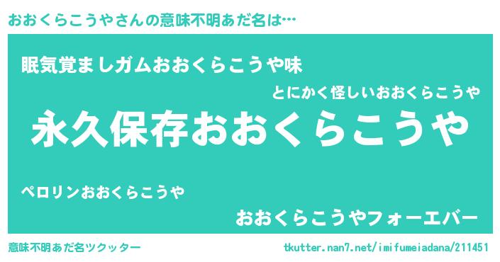 | 胡散臭い通販商品みたいなあだ名 | 『絶対に幸福をもたらす招き猫…その名も「おおくらこうや」』 |