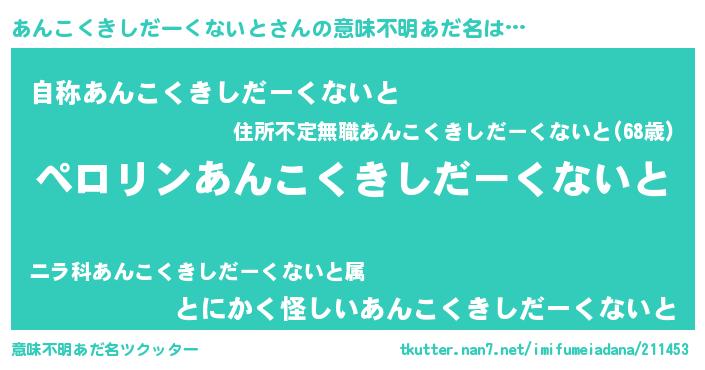 | 欧米人風あだ名 | 『マイケルあんこくきしだーくないと』 |