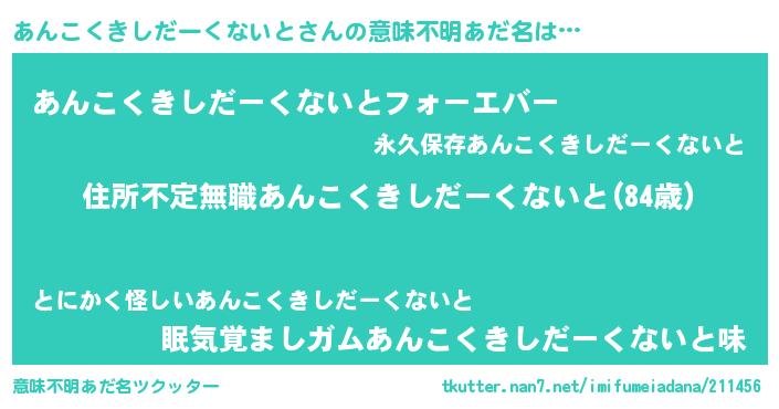 | 胡散臭い通販商品みたいなあだ名 | 『ハリウッド女優が絶賛した世界で10本だけ現存している希少なブランデー…その名も「あんこくきしだーくないと」』 |