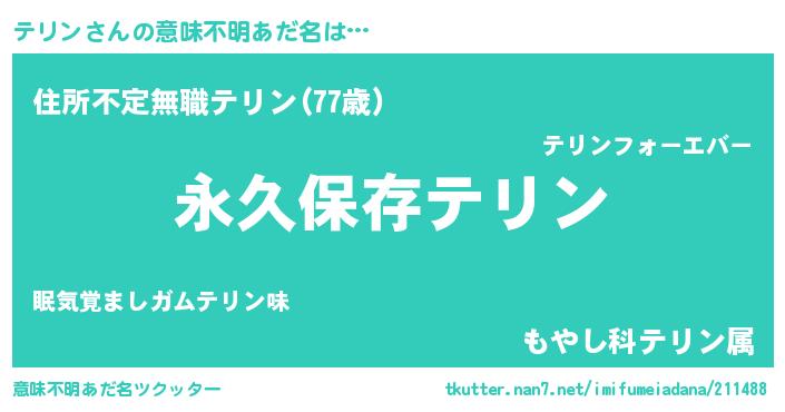 | 胡散臭い通販商品みたいなあだ名 | 『来世でも幸せになれる健康食品…その名も「テリン」』 |