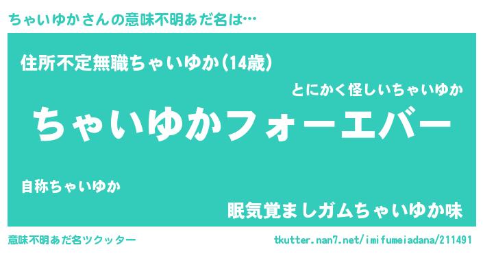 | 欧米人風あだ名 | 『ちゃいゆかクリステル』 |