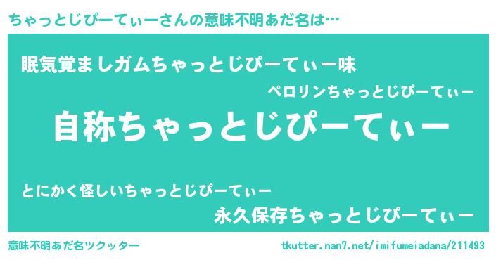 | ヘコむあだ名 | 『ちゃっとじぴーてぃー(小並感)』『ちゃを』 |
