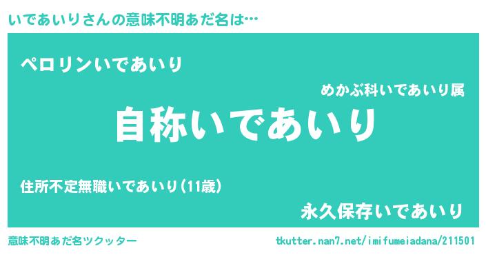 | 女子向けラノベタイトル風あだ名 | 『いであいりなんてお断りですっ。』 |