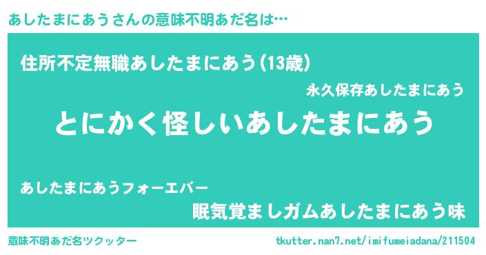 | 胡散臭い通販商品みたいなあだ名 | 『信頼と実績のネックレス…その名も「あしたまにあう」』 |