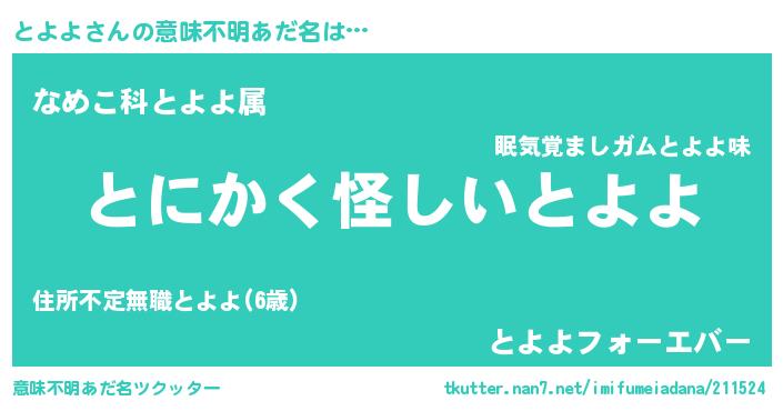 | 男性向けラノベタイトル風あだ名 | 『とよよの嫁は女の子じゃないと思った?』 |