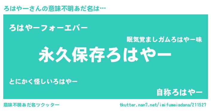 | ヘコむあだ名 | 『ろはやー(笑)』『つくし』『ろはお』 |