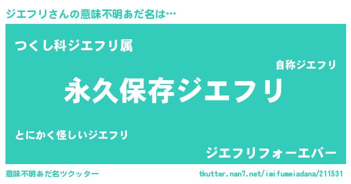 | 男性向けラノベタイトル風あだ名 | 『ジエフリという概念が存在しない退屈な世界 』 |