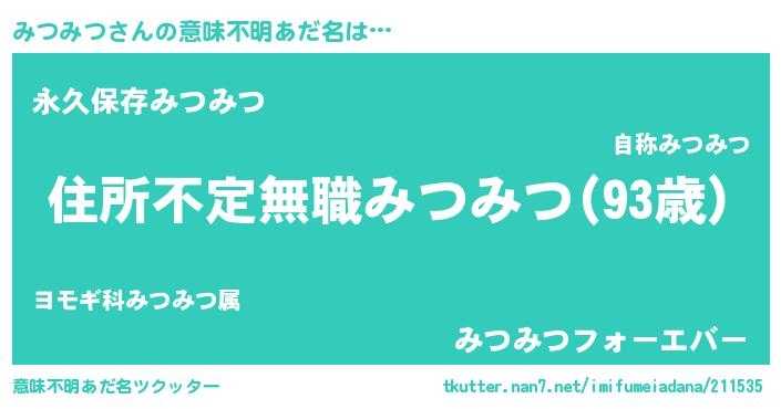 | ヘコむあだ名 | 『みつみつ(遠い目)』『酢こんぶ』 |