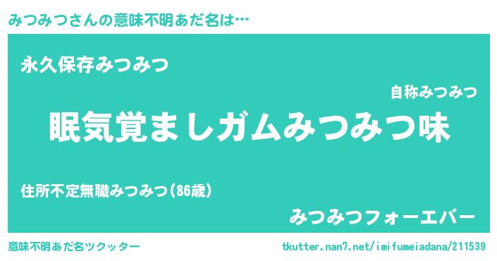 | 男性向けラノベタイトル風あだ名 | 『はたらくみつみつさま!』 |