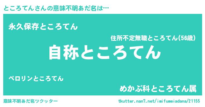 | ヒーロー風カッコイイあだ名 | 『超時空戦士トコロテン』『仮面トコダー』 |