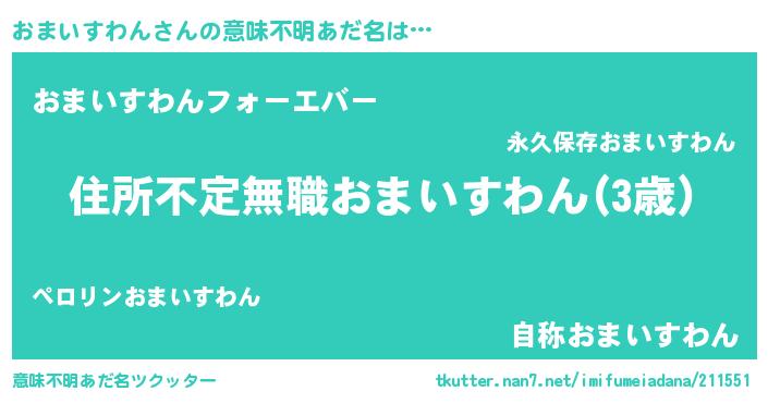 | ヒーロー風カッコイイあだ名 | 『仮面オマダー』『最強戦士オマイスワン』 |