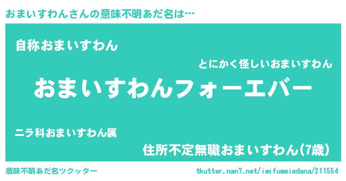 | ファンタジー風あだ名 | 『エターナルオマイスワンー』 |