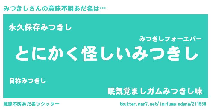 | 女子向けラノベタイトル風あだ名 | 『みつきしの卵を拾いまして』 |