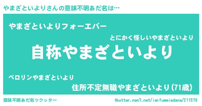 | 肩書あだ名 | 『やまざといより閣下』 |