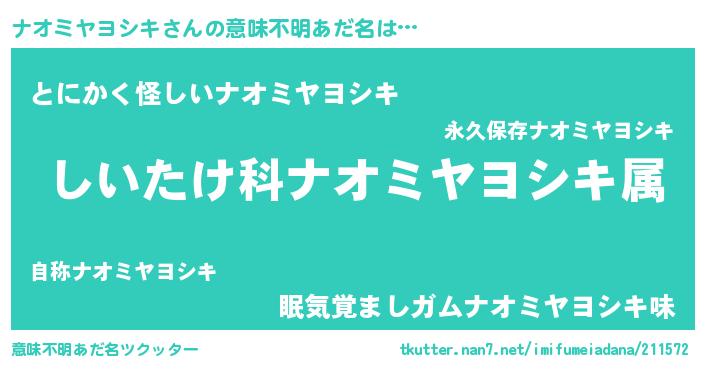 | ポケモン風あだ名 | 『ナオキング』『ヒナオミヤヨシキ』 |
