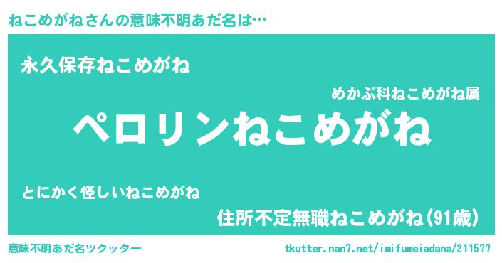 | 胡散臭い通販商品みたいなあだ名 | 『億万長者になれる霊験あらたかなお札…その名も「ねこめがね」』 |