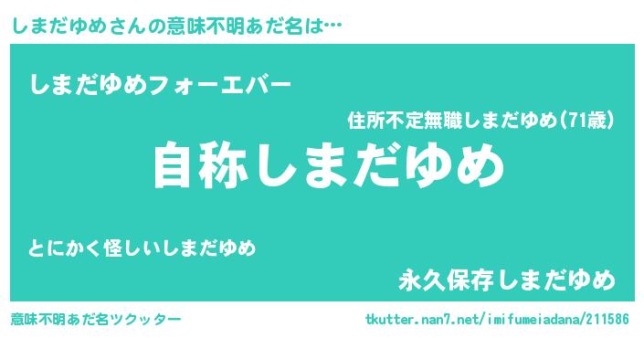 | 男性向けラノベタイトル風あだ名 | 『Re:しまだゆめから始める異世界生活』 |