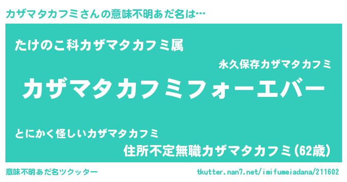 | ヒーロー風カッコイイあだ名 | 『ウルトラカザマタカフミマン』 |