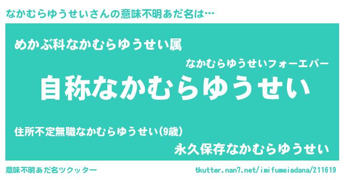 | 肩書あだ名 | 『なかむらゆうせい総統』 |