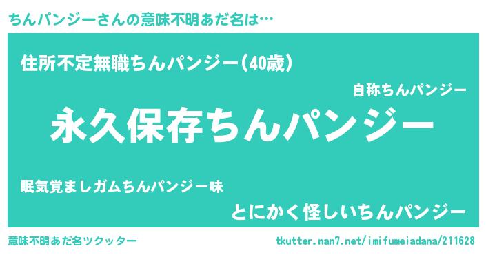 | 男性向けラノベタイトル風あだ名 | 『ちんパンジーという概念が存在しない退屈な世界 』 |