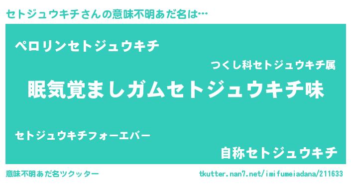 | 男性向けラノベタイトル風あだ名 | 『ノーゲーム・ノーセトジュウキチ』 |