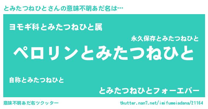 | 胡散臭い通販商品みたいなあだ名 | 『必ず成功するブレスレット…その名も「とみたつねひと」』 |