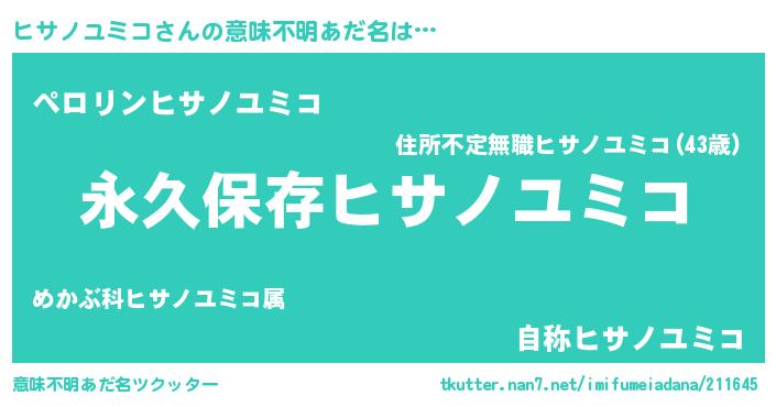 | 胡散臭い通販商品みたいなあだ名 | 『前代未聞の健康食品…その名も「ヒサノユミコ」』 |
