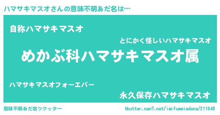 | 男性向けラノベタイトル風あだ名 | 『はたらくハマサキマスオさま!』 |