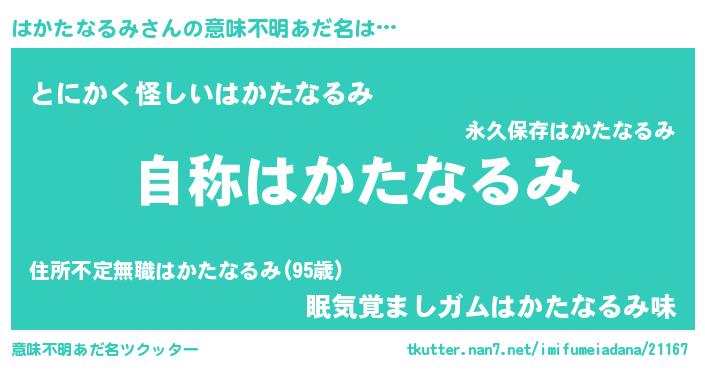| ヘコむあだ名 | 『はかっ子』『はかたなるみ(笑)』 |