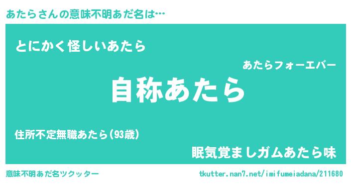 | ヒーロー風カッコイイあだ名 | 『最強戦士アタラ』『魔戒騎士アタ』 |