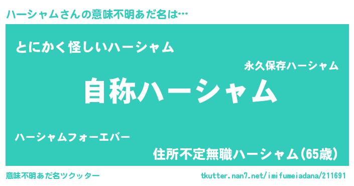 | 肩書あだ名 | 『ハーシャム閣下』『ハーシャム塾長』 |