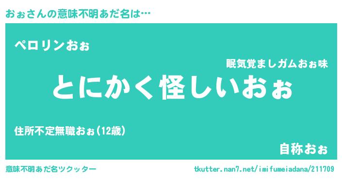 | 胡散臭い通販商品みたいなあだ名 | 『信頼と実績のサプリメント…その名も「おぉ」』 |