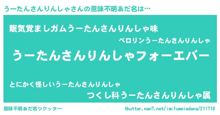 | 男性向けラノベタイトル風あだ名 | 『うーたんさんりんしゃに滅ぼされるだけの簡単なお仕事です』 |