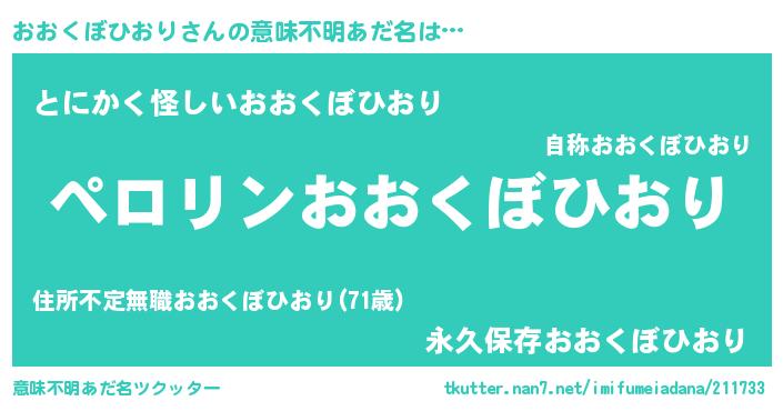 | 胡散臭い通販商品みたいなあだ名 | 『必ず成功する霊験あらたかなお札…その名も「おおくぼひおり」』 |