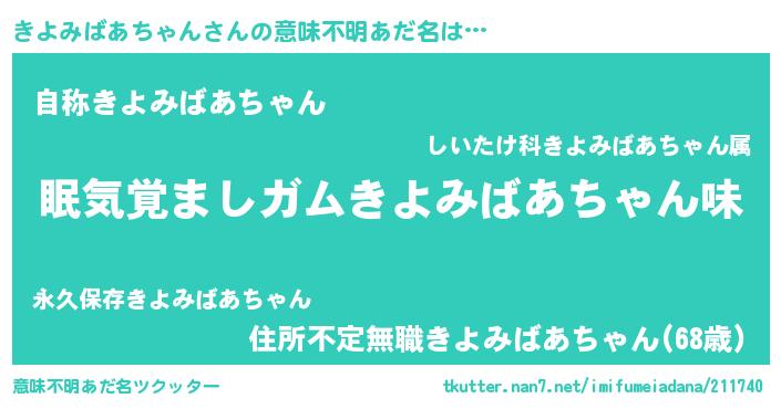 | 欧米人風あだ名 | 『ダニエルきよみばあちゃん』 |