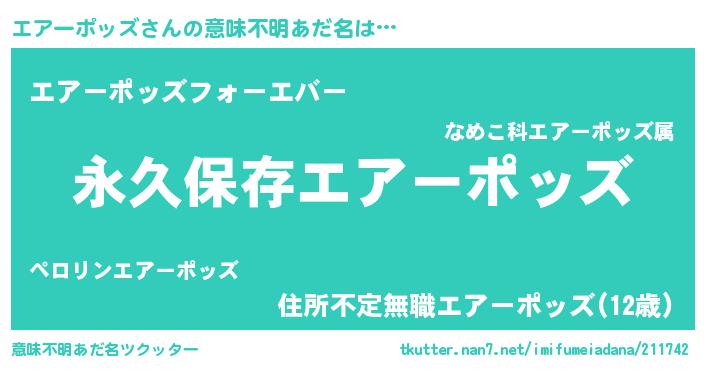 | 欧米人風あだ名 | 『アンジェラ・エアーポッズ』 |